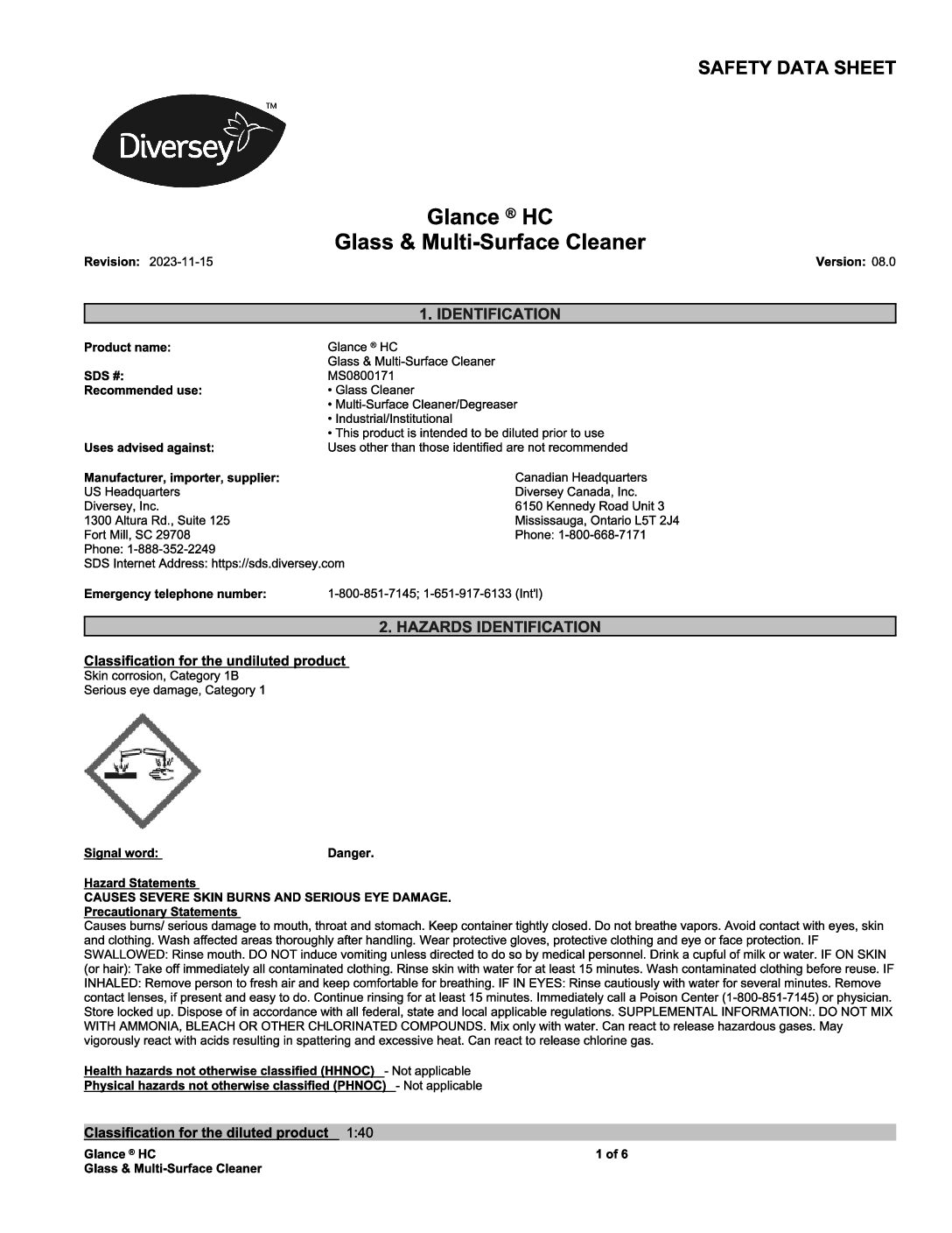 DIVERSEY Glance HC Glass and Multi-Surface Cleaner Nonstreaking, quick-drying, ammoniated glass cleaner cleans and shines glass, mirrors, sinks, countertops, stainless steel and many other washable surfaces. […]