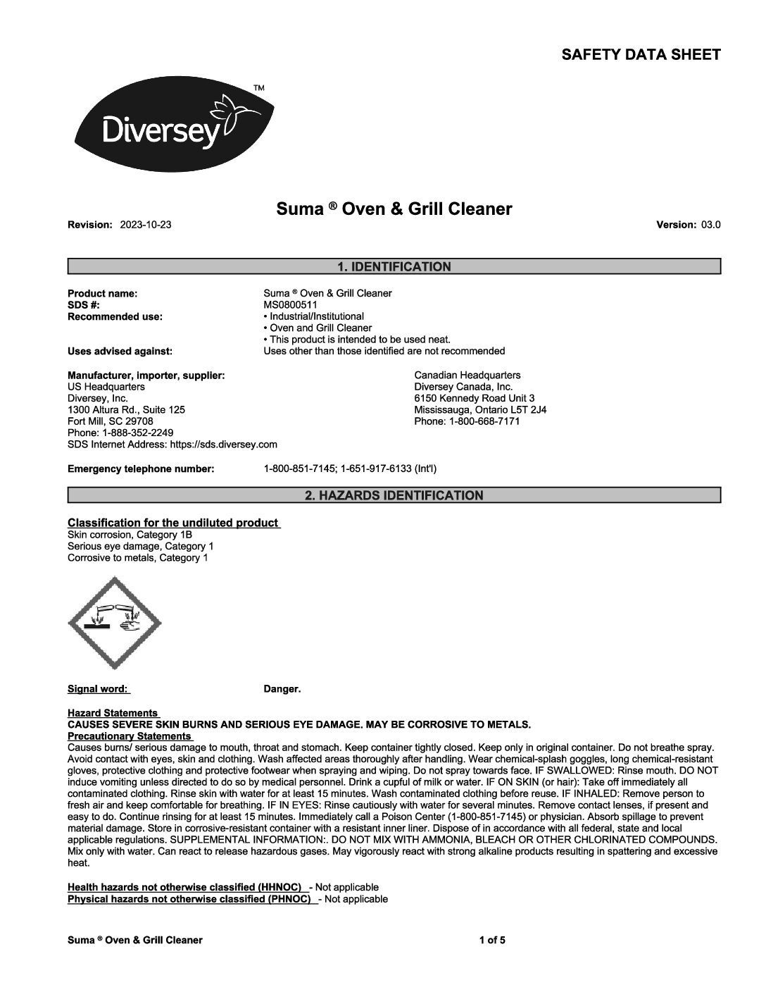 Diversey Suma Oven and Grill Cleaner