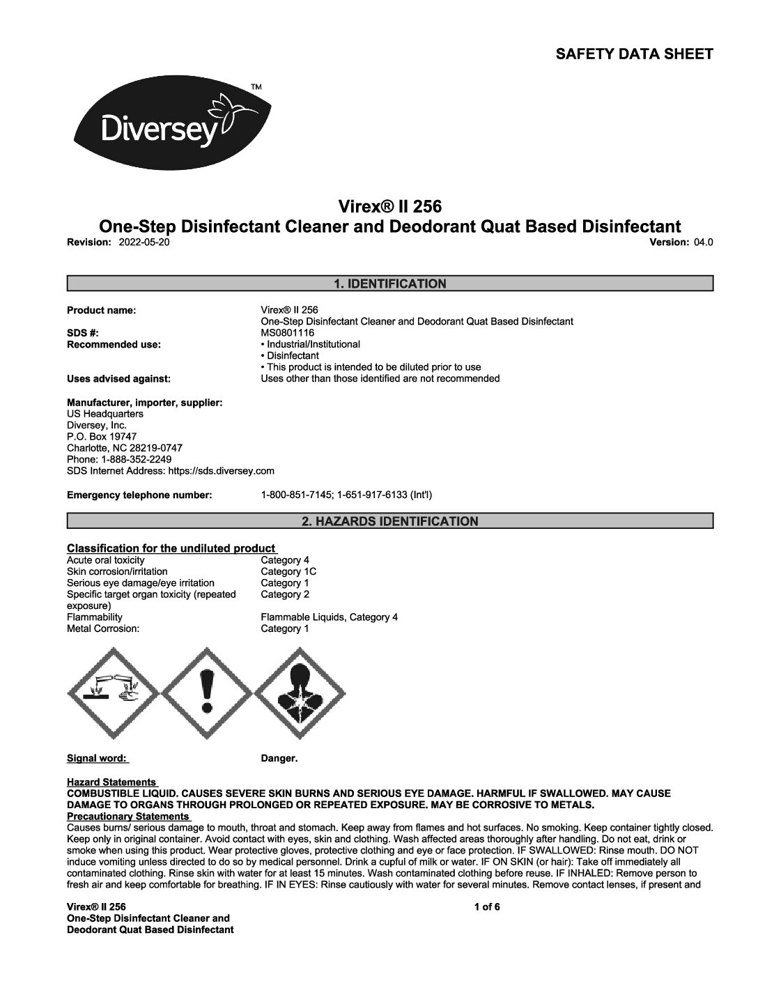 Diversey Virex II 256 One-Step Disinfectant, Cleaner, and Deodorant