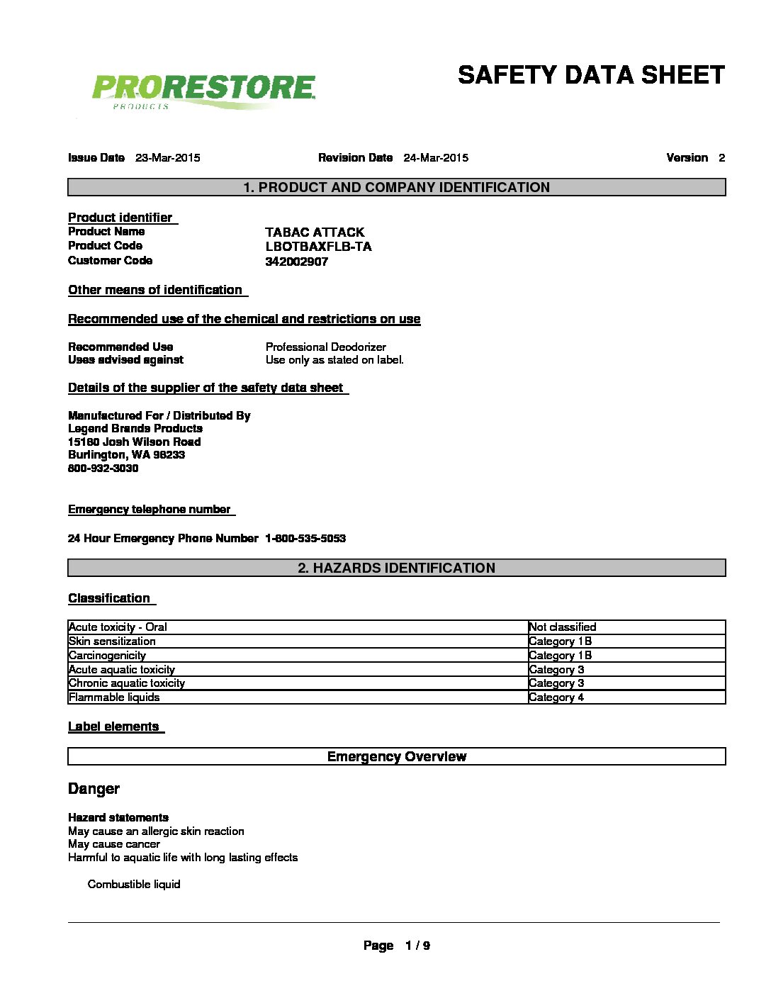TABAC-ATTACK By Odor X / Legend Brands