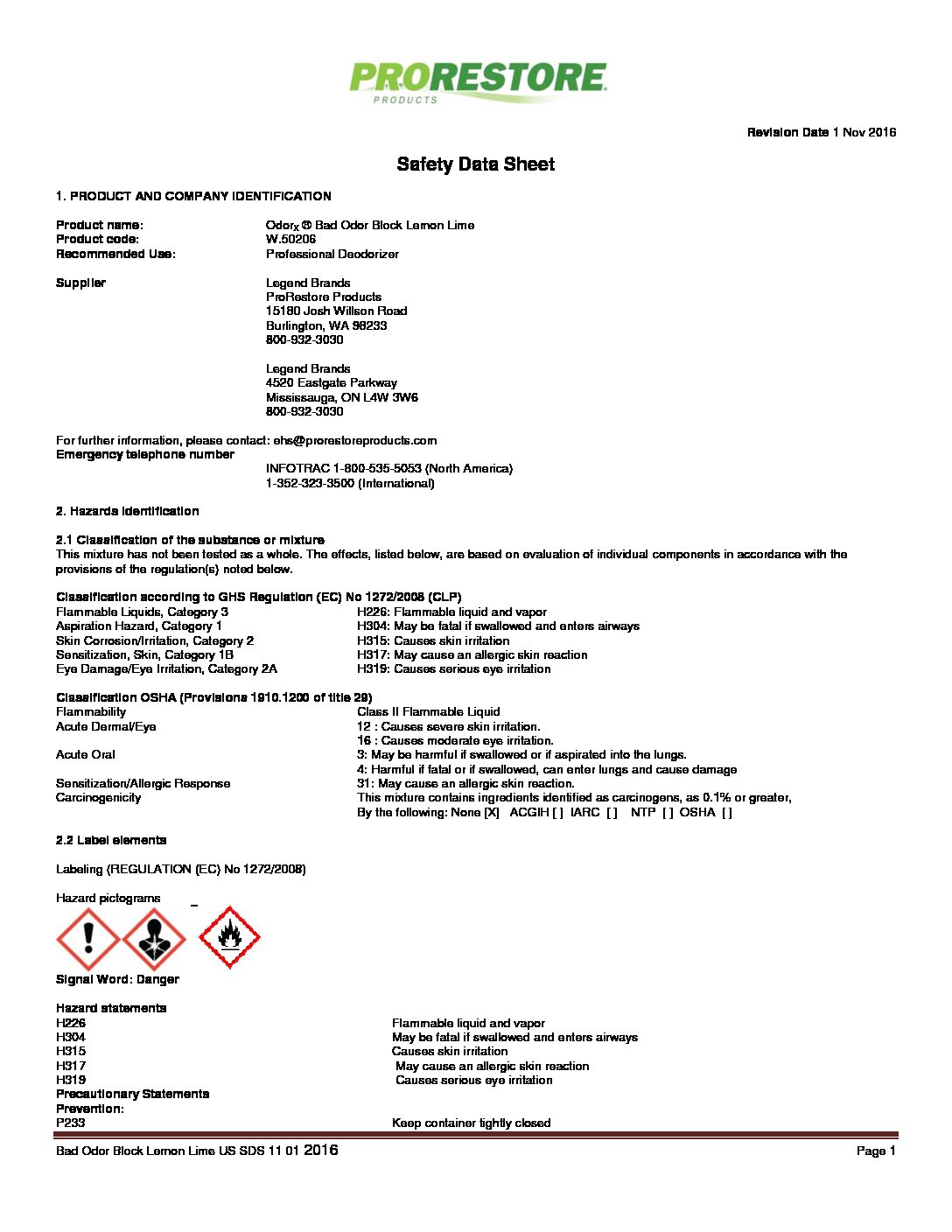 BAD ODOR BLOCK By Odor X / Legend Brands